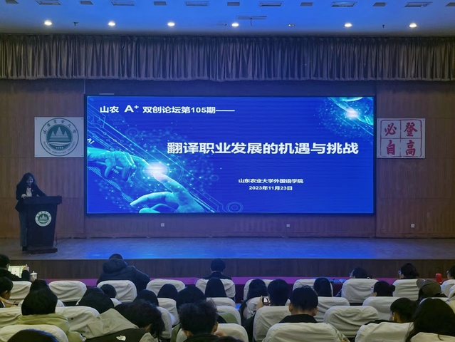 11月23 日,外语学院在泮河校区第一乐鱼网页版报告厅举办山农A+双创论坛,福州译国译民集团有限公司董事长林世宋担任主讲人,部分研究生、本科生代表参加论坛。